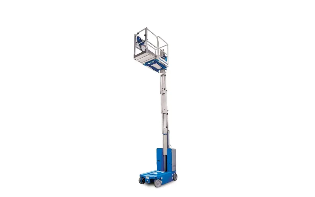 Podnośnik masztowy Genie GR-15 to kompaktowe, wysoko wydajne urządzenie typu mast lift, zaprojektowane z myślą o pracy w halach produkcyjnych, magazynach, zakładach przemysłowych oraz przy pracach konserwacyjnych i instalacyjnych – wszędzie tam, gdzie liczy się możliwość szybkiego dostępu na wysokość przy ograniczonej przestrzeni. Idealny wybór, gdy zajmujesz się układaniem kostki brukowej, paneli, parkietów lub pracami montażowymi – dzięki niewielkim gabarytom łatwo wjechać nim w ciasne pomieszczenia czy przez drzwi.