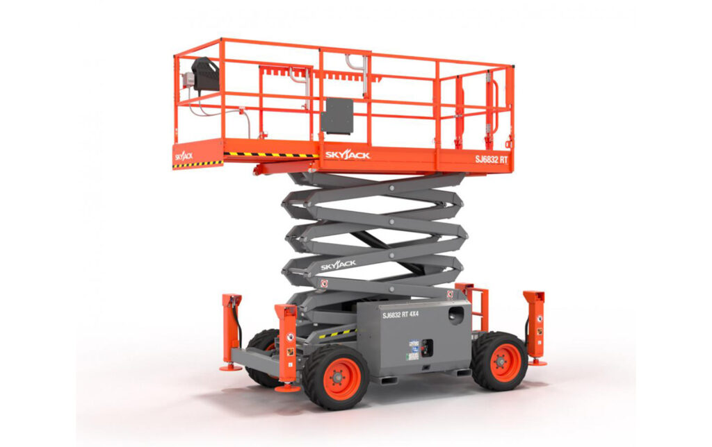 Model SJ 6832 RT 4×4 to terenowa (rough terrain) nożycowa platforma robocza marki Skyjack wyposażona w napęd 4×4, przeznaczona do pracy na trudnych nawierzchniach i w wymagających warunkach budowlanych. Wyposażona w mocny silnik (zwykle diesel), terenowe opony i dużą nośność platformy — jest świetnym rozwiązaniem, jeśli potrzebujesz podnośnika wysokiego zasięgu (ok. 11‑12 m) na zewnątrz.